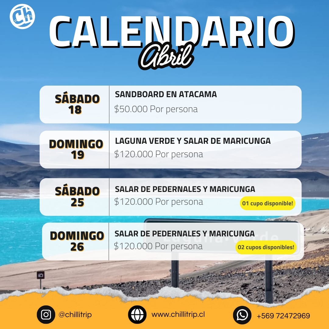 Chillitrip es un tour operador de turismo responsable, que busca promover el desarrollo local sustentable, revalorizar el patrimonio y generar experiencias de viaje en el Desierto de Atacama y Chile. Ofrecemos circuitos a medida dirigidos a viajeros con interés por la vida al aire libre, en busca de nuevos destinos y vivir experiencias significativas. Todo ello en un entorno lleno de contrastes, paisajes vírgenes y una comunidad culturalmente diversa. Brindamos servicios en armonía con el medio ambiente, las personas que viven allí y nosotros mismos. Para lograrlo, nuestros colaboradores son en su mayoría locales y nuestras actividades buscan generar un encuentro entre visitante y visitante, promoviendo de esta manera el cuidado y la riqueza de su entorno. Organizamos viajes y eventos personalizados dentro de la región, nuestros servicios van desde excursiones, expediciones, traslados, guiado y logística, entre otros. Todo bajo un compromiso de confianza, colaboración y seguridad.