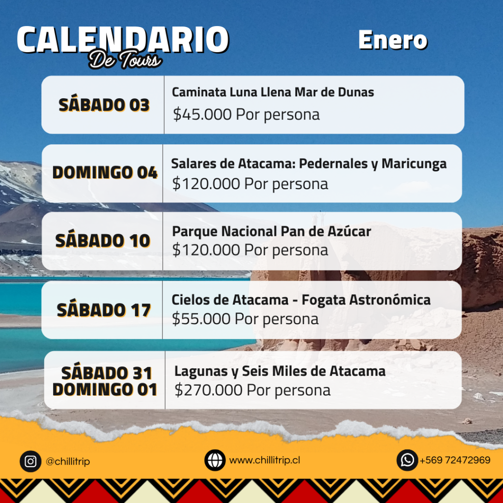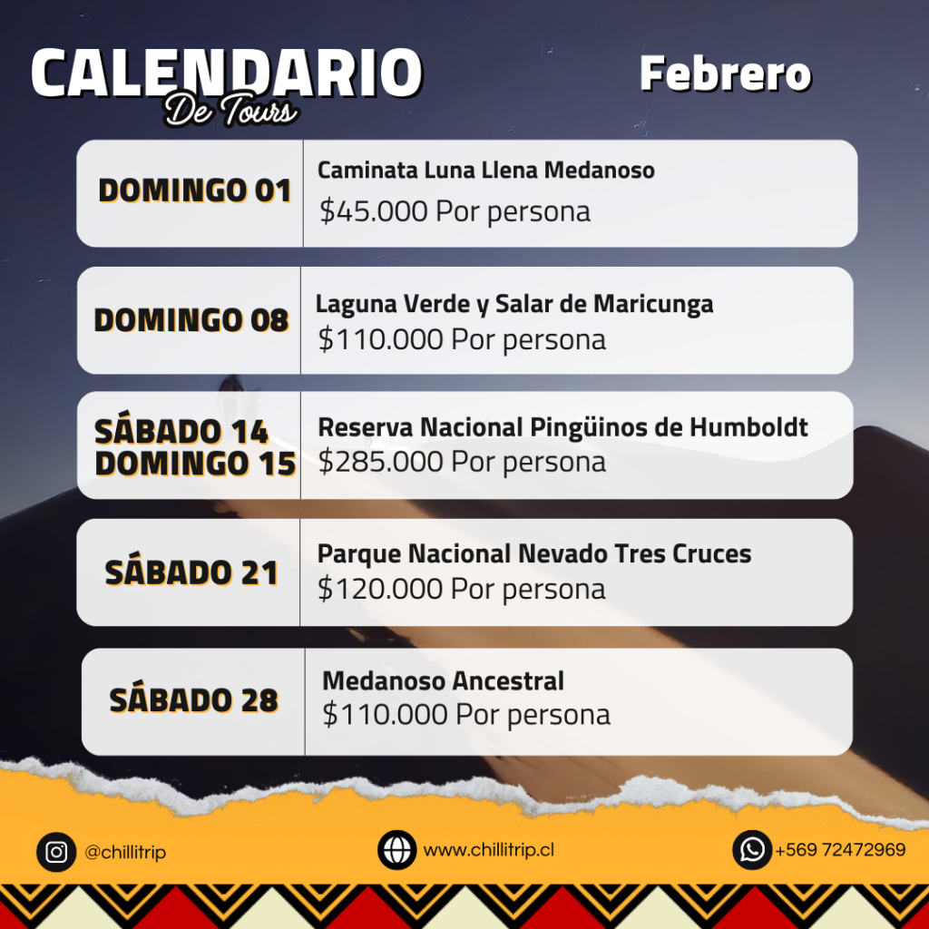 Hemos tenido unos días de viaje espectaculares con Chillitrip conociendo El PN Pan de Azucar, El Salar de Maricunga, Laguna Verde con un trekking inolvidable , La Mina San José, Dunas para practicar Sandboard, Bahia Inglesa. Solo palabras de agradecimiento a todo el grupo humano que organizó con mucho detalle nuestro viaje y con un cariño que se siente, haciendo que todo fuera simplemente Perfecto.